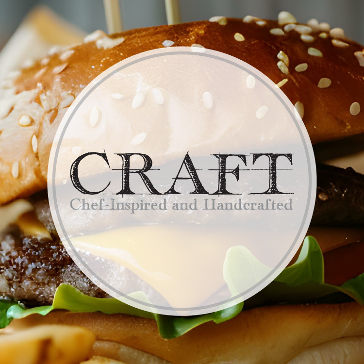 Fresh makes all the difference at Craft. Our burgers begin with hand-formed patties and are prepared fresh to order with great care. We also serve up healthy options, including Turkey Burgers and Vegetarian Burgers,and express our creativity with weekly features such as Black Bean and Avocado Burger, Tempeh Reuben Burger, and Grilled Portobello Sandwich.